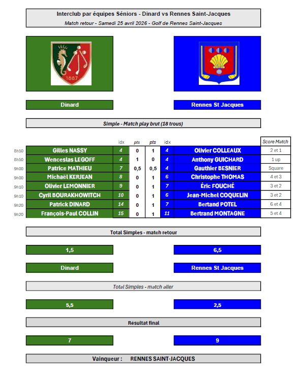 A l'issue des matchs aller/retour, Rennes est vainqueur 9 à 7.