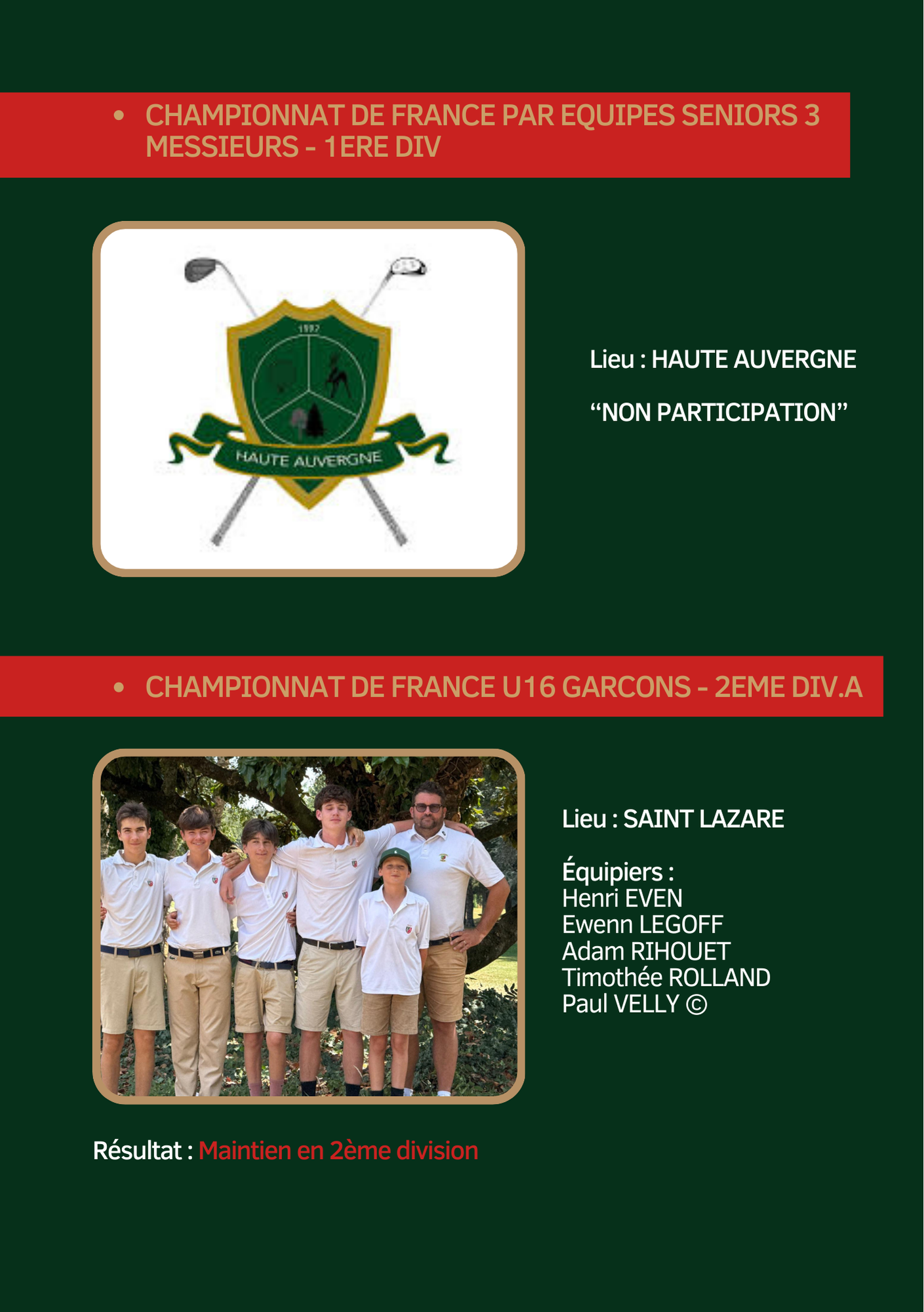 Vie du club